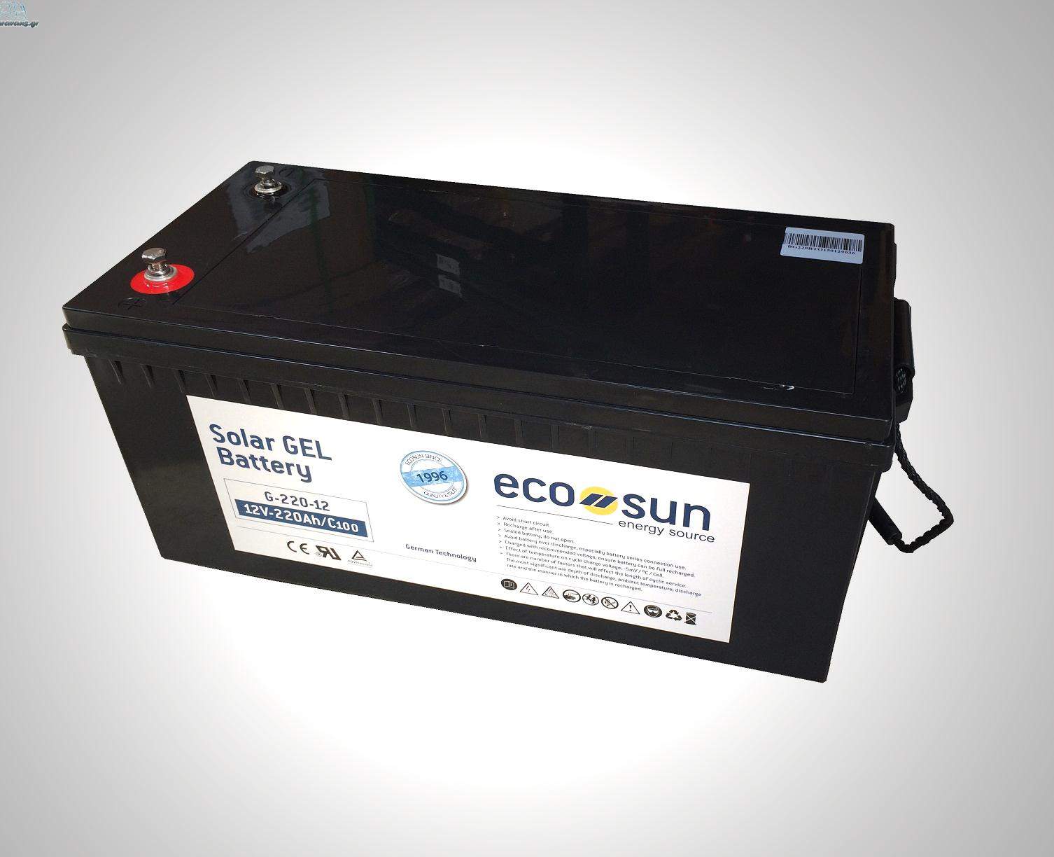 Μπαταρία βαθιάς εκφόρτισης της ECO-SUN τύπου GEL στα 12V και 220Ah.